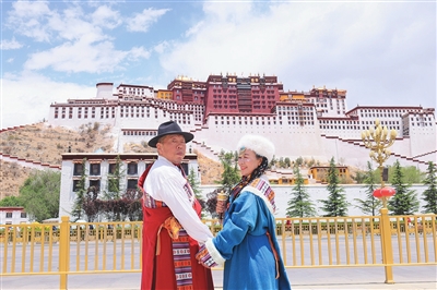 此次高原之旅,徐雅荷和老伴还体验了一把“高原旅拍”。“我们穿上藏族服饰,在布达拉宫门前拍了好几组藏族风情的写真,并且制作成了相册,为我们的西藏之旅画上了美丽的句号。” 记者 崔佳佳