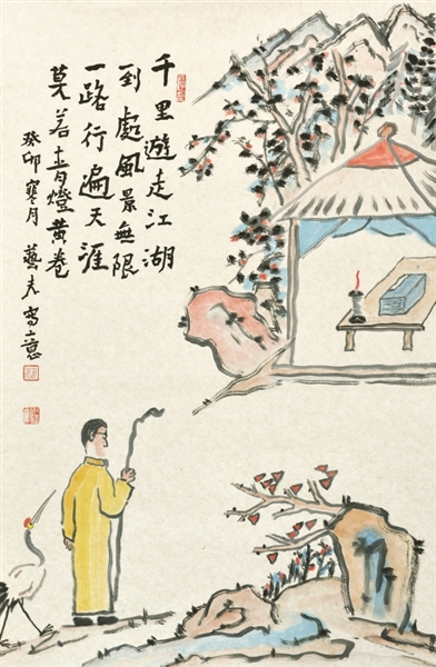 姜平林的画作中不乏自我、鹤、风花雪月、水竹云山等元素,其实都是借这些来表达他的内心想法,“如果因此能够得到一些观众的喜欢,我就心满意足了。”姜平林说。 记者 臧硕