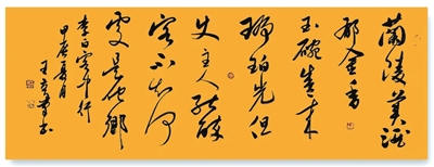经过多年的钻研与积累,如今,王立群也逐步形成了独具个人特色的行草书风格:他将“二王”、王铎、米芾的行书糅进草书中,又将其与今草、章草融合在一起,使自己的作品既具有传统的厚重感,又不失现代的气息。也正因如此,王立群凭借自己的个人风格作品,在全国大小比赛中揽金无数。“平时我会采用选珍珠式读帖,在作品中精挑细选出有特点、新颖的字,重点进行临写,再根据个人的理解与感悟进行创作。”王立群说道。
