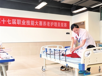 相较于过去受传统观念影响,很多年轻人不愿意从事养老护理行业,记者在比赛现场看到,进入决赛的30名选手中,“90后”“00后”占比60%以上,80%以上都是大专以上学历,越来越多的年轻人开始主动选择加入养老护理员队伍。