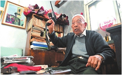 “冲啊,杀啊!”济南莱芜区一间民居里,一位老人手握手枪,中气十足地喊着,闻者无不被感染,仿佛又回到战争年代。