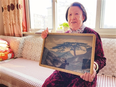 在刘明芳的家中,还悬挂着两幅锦织画。这两幅画是刘明芳与袁宪立结婚时,丈夫在青岛钢铁厂的朋友赠送的。一幅描绘的是泰山劲松,另一幅则是颐和园的风景。