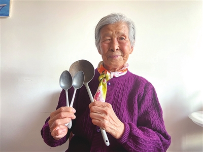 “苞米糊糊、豆面糊糊、地瓜干汤,这把勺子没盛过什么好吃的,它跟着我经历了许多苦难。”张玉秀抚摸着勺子上的裂缝,聊起当年的苦日子,眼圈泛红。