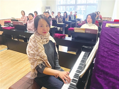 58岁的陈雪峰学习钢琴有一年的时间,她表示,家里的钢琴还是女儿小时候买的,这一放就是20年。去年她报名了钢琴课,一年下来收获很大。“老师讲得很好,指导学员非常有耐心,专业水平也高。”