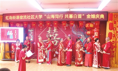 “老头子,这些年辛苦你了!”“老伴,感谢你这些年对咱们这个家庭的付出,你今天真美!”宿流社区为老人们举办的金婚庆典,让携手相伴半个多世纪的夫妻讲出了藏在心底的话。“以前,我觉得社区就是个住的地方,现在不一样了,我觉得社区就是家,我要为它的发展出一份力。”社区居民韩女士激动地说。