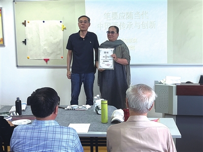 本报讯 6月12日,由青岛市民政局老年活动中心主办、青岛报业文化艺术专修学校承办的公益名师大讲堂活动在老年活动中心举办。活动特聘请青岛市女书画家协会主席戴淑娟为活动中心专家顾问团顾问,充分发挥专家顾问团的指导作用,为学员们提供更专业的指导。青岛市民政局老龄处有关负责人为戴淑娟颁发聘书。