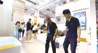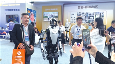 左图为智能养老机器人“夸父”在老博会上备受瞩目。