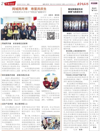 据了解,本报推出生日“同悦荟”活动,旨在回应读者的热忱支持,增进读者间的情感交流。该活动将每月定期举办,为同月出生的读者搭建欢聚平台,让老人们感受社会的温暖与关怀。有11月份过生日的读者,可拨打电话(0532)66988698、66610000报名。
