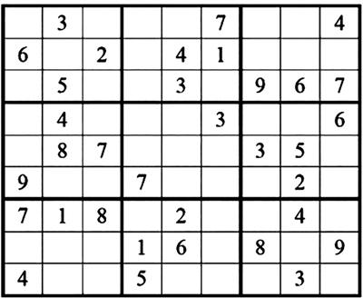 在每一个小九宫格中,分别填上1至9的数字,让整个大九宫格每一列、每一行的数字都不重复。
