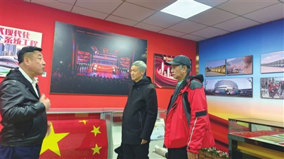 “起重队当时很有名,我小时候每年都去。”刘金锡感慨地说,“这就是咱们起重队的门牌。”刘增平指着门牌向刘金锡介绍,从门牌到食堂再到澡堂,两人就像多年未见的老哥俩,共同勾起那个年代的珍贵记忆。