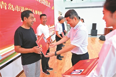 ■2022年7月28日,青岛市为退役军人和其他优抚对象代表颁发优待证。优待证是退役军人享受社会化优待项目的重要凭证,首批8000余张优待证将通过集中发放、送证上门等形式陆续发放到退役军人和其他优抚对象手中。