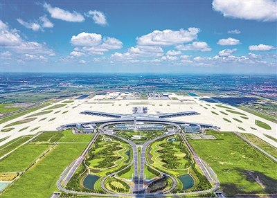 青岛胶东国际机场航拍全景。