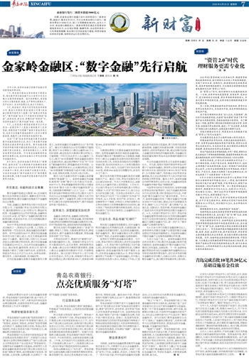 5月,青岛银行、青岛闪收付信息技术有限公司、数金公共服务(青岛)有限公司等3家金融区机构申报项目入选第二批“场景应用实验室”,“数字金融”成为3个申报项目共同的“标签”,在新技术、新业态、新模式的“培养皿”中,金家岭金融区以“数字金融”独成一道风景。