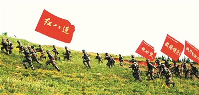 第80集团军某旅“红八连”官兵在旗帜的指引下发起冲锋。 曹 鹏 摄