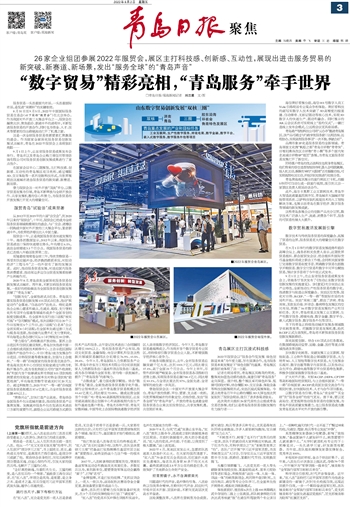 这是一次全球服务贸易资源要素汇聚激荡的盛会。作为国家全面深化服务贸易创新发展试点城市,青岛在2022年服贸会上表现依旧亮眼——