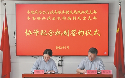 ■市委编办政府机构编制处党支部与12345热线党支部协作配合机制签约仪式。