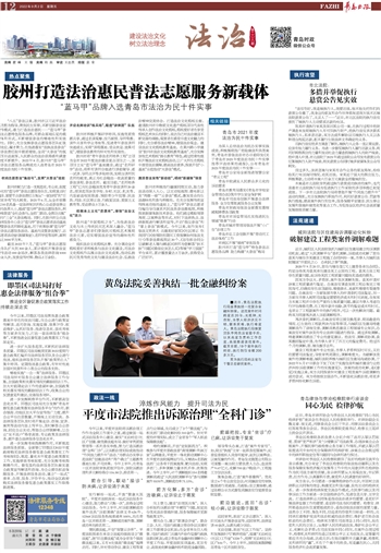 今年以来,平度市法院将诉源治理工作作为全院工作重中之重,通过做强一站式诉讼服务中心建设、做实“无讼村庄(社区)”创建、做优微法庭布局、做好审判质效管理等一系列务实举措,努力打造诉源治理“全科门诊”,以诉源治理实际成效推动“作风能力提升年”活动、“为群众办实事示范法院”创建活动和“两个确立”主题教育落地生根、开花结果。今年上半年,在青岛十区市法院审执质效评估中,该院诉源治理和多元解纷得分116.58分,排名第一。