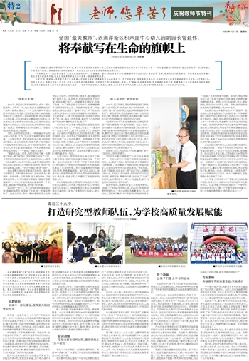 从挂牌教育部“双新”示范校、担纲青岛市中小学海洋教育集团核心校、开办高新分校,到过去一年同时获得山东省教学成果特等奖、山东省教师专业发展基地、山东省首批中华优秀传统文化传承示范校、山东省绿色学校等荣誉称号,即将迎来70周年校庆的青岛三十九中正焕发出勃勃生机。青岛三十九中缘何一直走在高质量发展的轨道上?一支拼搏进取、充满活力、持续发展的研究型教师队伍是重要原因之一。