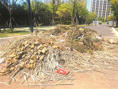 ■卧龙湖公园停车场中央堆放着大量垃圾。