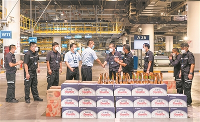 ①青岛国际机场集团有限公司工会到地面服务部行李分拣科慰问一线职工。