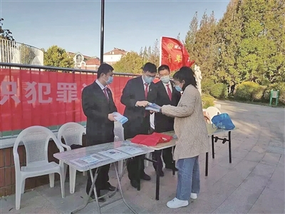 日前,刑一庭青年先锋队联合胶州市人民法院刑事审判庭到胶州市阜安街道办事处市南小区社区,通过发放宣传册、悬挂横幅、现场讲解等方式,向居民讲解《反有组织犯罪法》,还向居民推荐了青岛中院拍摄的普法微视频,引导社区居民学习法律知识,及时举报身边黑恶势力违法犯罪,依法维护自身合法权益,积极参与常态化扫黑除恶斗争。