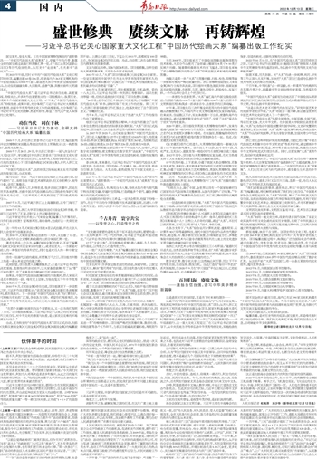 编纂典籍,是对历史传统的延续;国宝重光,却是唯有新时代才能完成的壮举。我们的文化绵延不绝,我们的创造生生不息,必将铸就中华文化新辉煌。