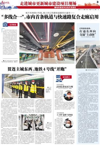 “最关键的是,借助4号线,我可以更便捷地去往全市已通地铁的区域,以及外出去机场、火车站,且时间自由掌握精准,不存在堵车或者延迟的问题。”郭显海说,地铁改变生活,他现在真真切切有了获得感。