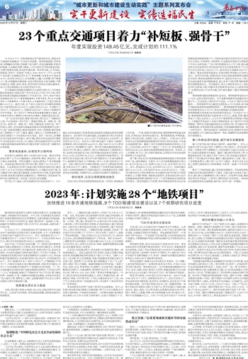 到年底,中心城区北部快速通道项目实现全线开工。中心城区北部快速通道工程是青岛胶东国际机场集疏运体系的重要组成部分。胶州段作为先期实施段,东起城阳胶州界,西至胶东国际机场南互通立交,全长6公里(不含国道204大沽河桥),总投资约30.72亿元。2022年6月胶州段全面开工建设,目前施工进展顺利,累计完成投资16.83亿元,预计2023年12月主桥完工,2025年6月份辅路交工通车。胶州市交通运输局党组书记、局长刘学介绍,除以上路段外,我们正积极推进中北通道西延工程,东起机场高速胶东互通,向西穿越沈海高速至马铁路,全长约16.3公里,总投资约96.04亿元,包括高架和地面两部分。高架部分采用高速公路,双向四车道(预留双向六车道快速路条件);地面路采用城市主干路标准,双向八车道(局部双向六车道)。目前,两部分均在方案研究阶段,2023年主要推进项目前期,争取2024年开工建设。工程建设对于实现青岛胶东国际机场及上合国际超级港对外交通快速出行,完善集疏运系统,保障客货运快速集散,支撑现代化上合新区的发展具有重要意义。