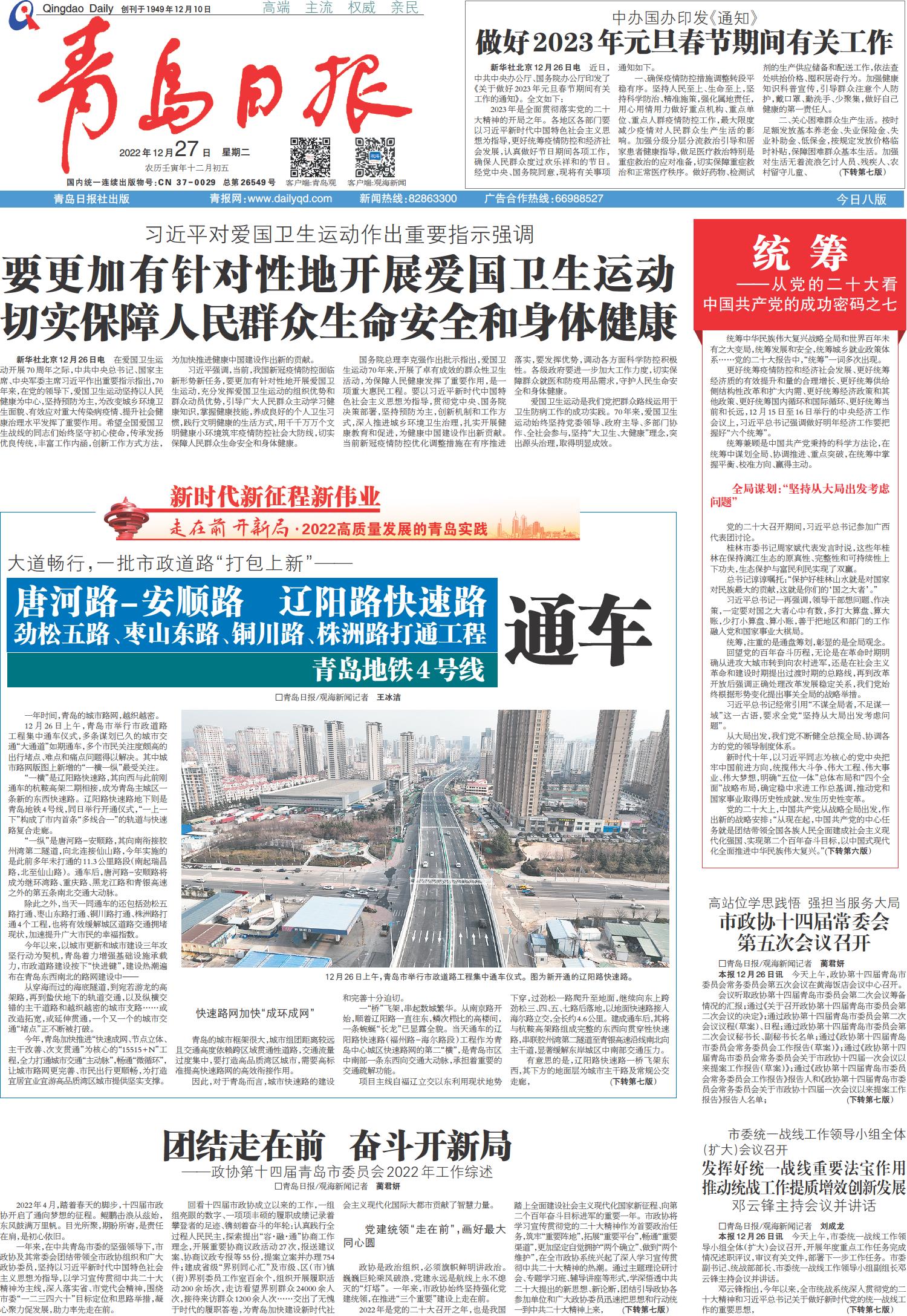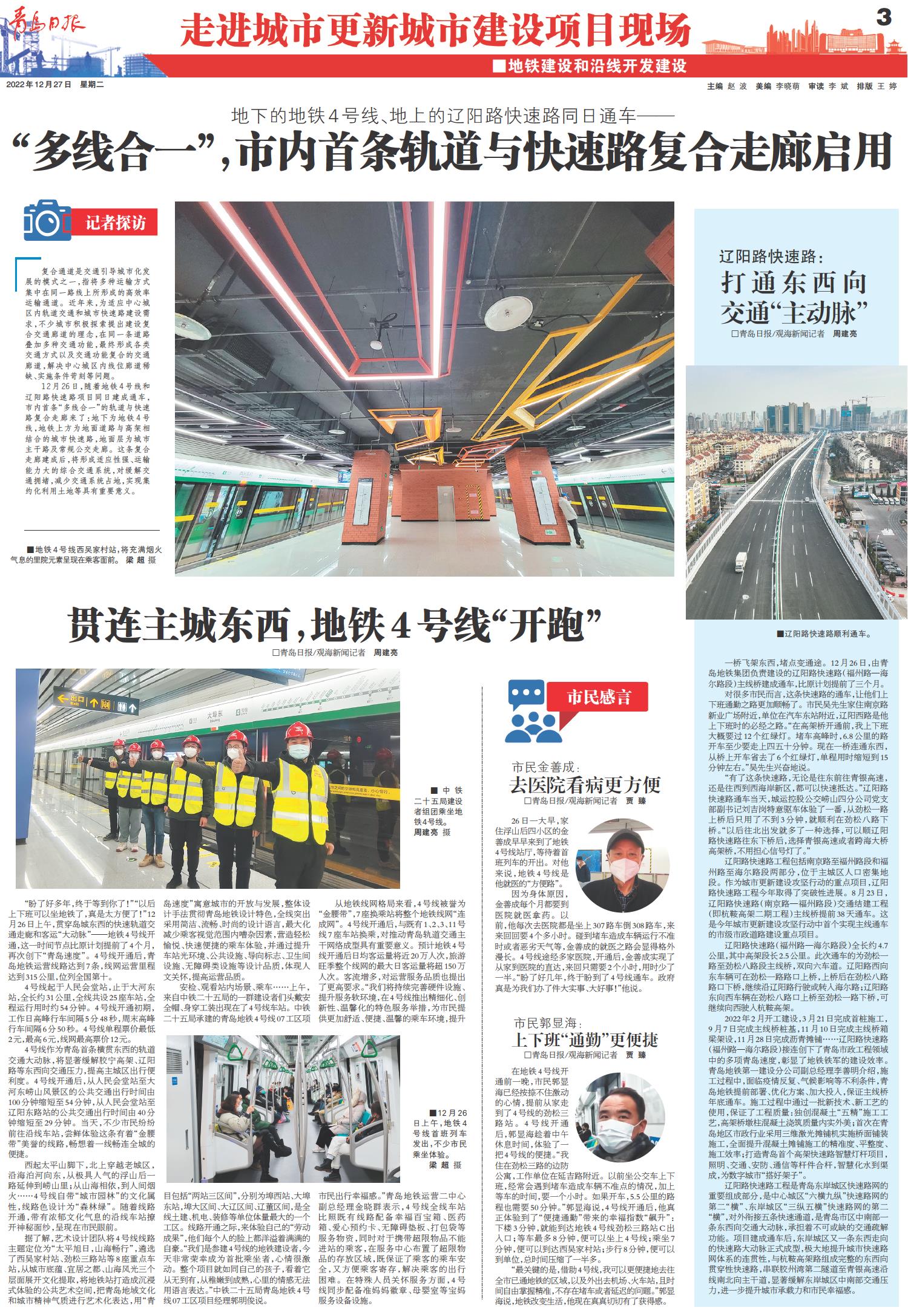 唐河路-安顺路 辽阳路快速路 劲松五路、枣山东路、铜川路、株洲路打通工程 青岛地铁4号线 通车