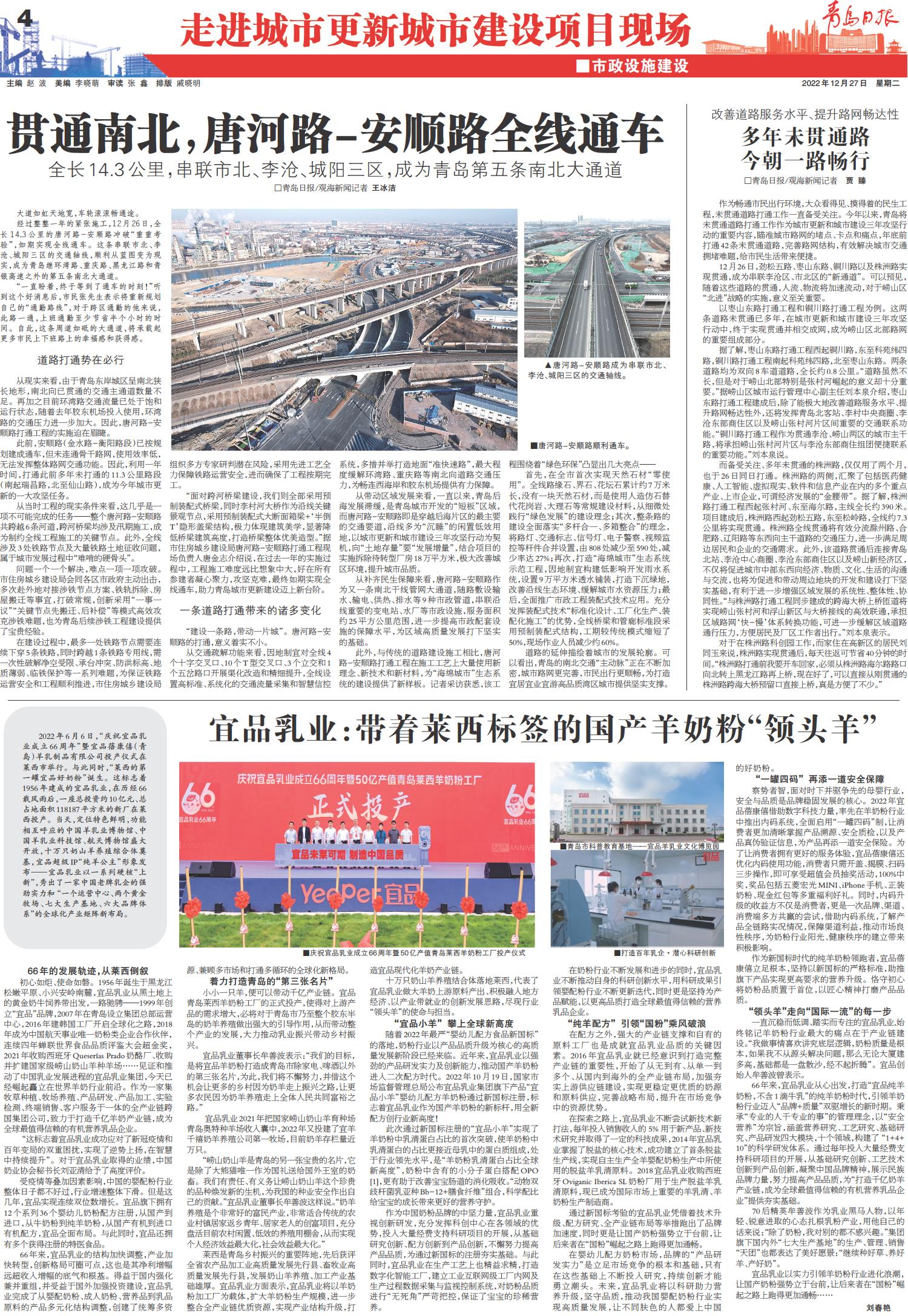 贯通南北,唐河路-安顺路全线通车