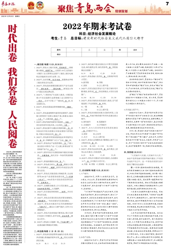 本报编辑部根据赵豪志市长在青岛市第十七届人民代表大会第二次会议上所作的 《政府工作报告》,准备了这份“试卷”。通过试卷作答,读者可以更好地从一个个具有突破性的数据和具有创新性的举措了解青岛经济社会发展所取得的成就以及未来发展的新思路、 新蓝图,以新视角读懂当下青岛的激昂奋斗之心,进一步统一思想、凝聚共识,奋力谱写青岛建设新时代社会主义现代化国际大都市新篇章。