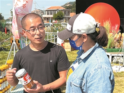 ■北宅街道新农青年在展会上向市民推销特色农产品。 (资料图片)