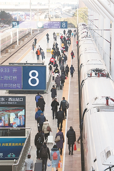 “忙碌了一年,这次回家要好好看看妻子和女儿,给娘俩买过年的新衣服,让她们欢欢喜喜地过新年。”在青岛火车站东候车室里,老家山西临汾、在青岛从事装修工作的张亚飞一边与女儿视频,一边等着检票进站,脸上洋溢着开心喜悦的笑容。今年春节比往年早一些,在铁路青岛站和青岛北站,像张亚飞一样拎着大包小包选择在春运首日返乡回家的人比比皆是。今年春运,铁路客流以探亲流、学生流、务工流及旅游流为主,节前乘车旅客以探亲流及少量务工返乡流为主,客流相对平稳;节后客流量将有较明显增长,其中探亲流、旅游流集中于节假日期间出行,学生流、务工返程流主要集中于假日后出行。春运期间,青岛火车站(含青岛北站)预计发送旅客150万人,发送量与去年同期相比增长7.4%。青岛站客运车间主任成浩介绍,车站按照“充足安排、按需启动、响应快速、应急有备”的思路,科学安排春运方案,梯次投放运力,安排临客运行线15对,保证有效供给。同时,青岛火车站改造升级后重新开门纳客,站内重点旅客服务专区、母婴候车室等硬件设施设备同步改造升级,为旅客营造温馨的出行环境;为实现“无缝换乘、快速进站”,针对地铁换乘铁路旅客集中进站情况,全面升级进站闸机,开通6个自助进站通道和2个人工进站通道,优化换乘进站流线,拓宽安检等候区域,进一步提升旅客出行美好体验。