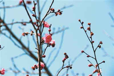 ■2月24日,中山公园梅花园里一派“争春”景象:有的梅花绽放枝头,有的含苞待放。梅花绽放形成的片片春意吸引了不少市民驻足赏花拍照。