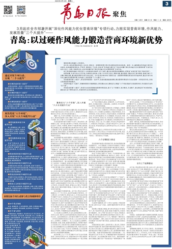 近年来,青岛在营造市场化、法治化、国际化一流营商环境方面已形成鲜明的特色和体系。新的一年,聚焦推动作风能力常态化长效化,青岛继续在常和长、严和实、深和细上下功夫,在全市“作风能力提升年”活动总结暨“深化作风能力优化营商环境”专项行动动员大会上,市委、市政府决定,在全市部署开展“深化作风能力优化营商环境”专项行动。