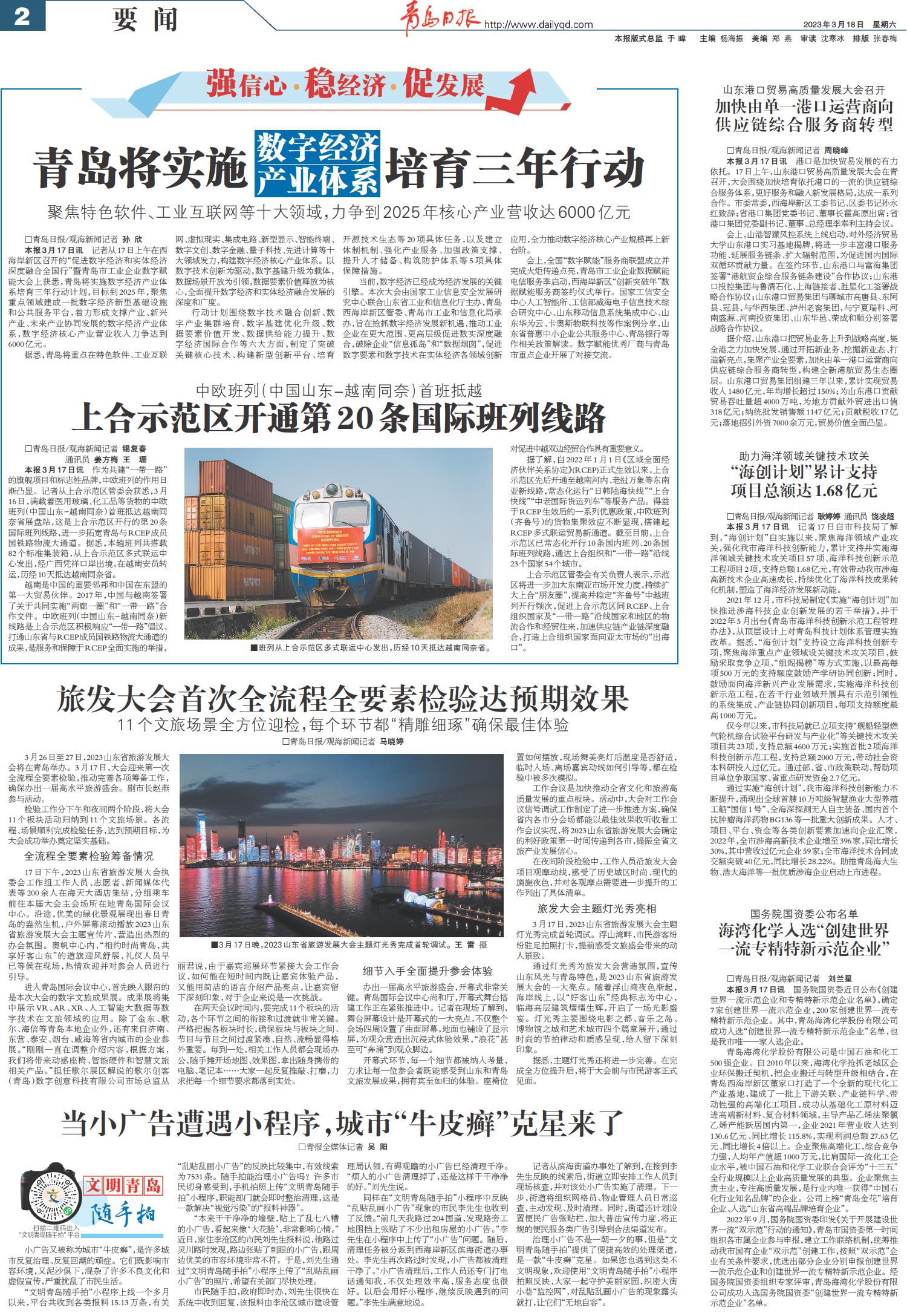 01 首版 02 要闻 03 青岛日报聚焦 04 要闻·专题 05 要闻 06 工赋青岛 07 财智 08 法治
