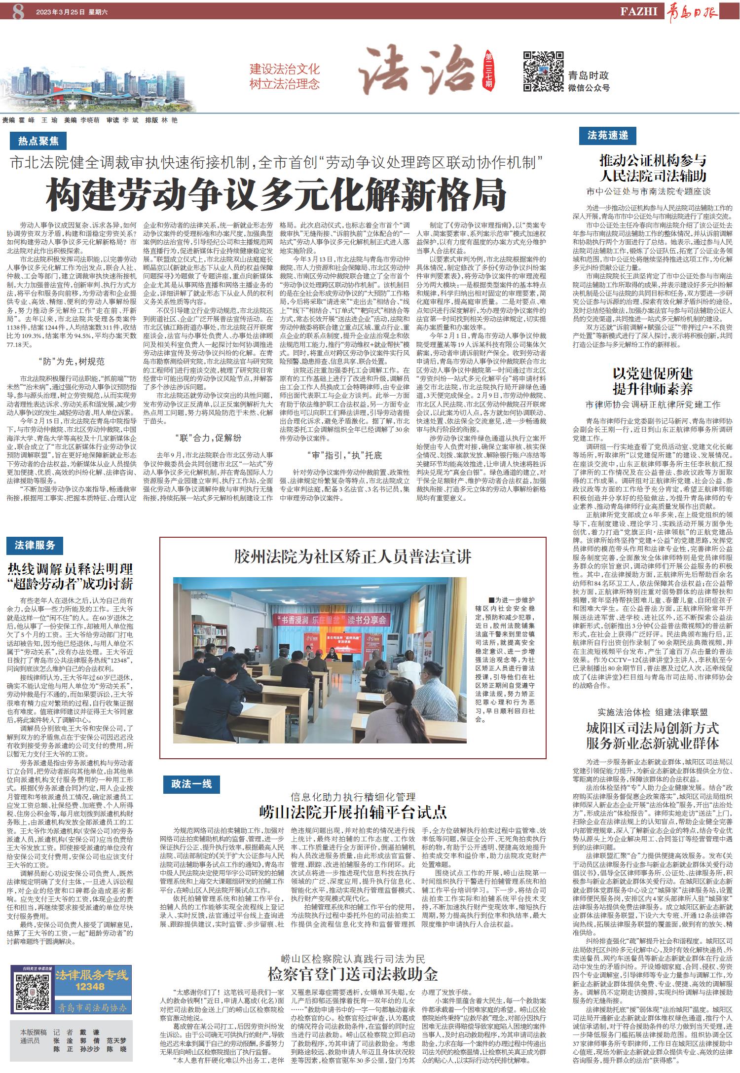 城阳区司法局创新方式服务新业态新就业群体