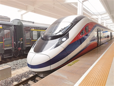 本报4月13日讯 13日上午,由中车青岛四方股份公司和大连公司联合制造的“复兴号”CR200J型动车组、“澜沧号”动车组担当的D887次、D888次首发列车载着中老两国旅客,分别从中国昆明南站和老挝万象站双向对开投入跨境运营,标志着中老铁路正式开行国际旅客列车。由此,中国昆明和老挝万象之间实现动车组直达,朝发夕至。
