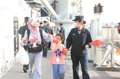 记者从海军有关部门了解到,执行紧急撤离任务的海军军舰于26日上午提前抵达并靠泊苏丹港后,迅速在码头设立安全警戒区域,特战队员持枪担负警戒。在中国驻苏丹大使馆武官、工作人员和海军官兵引导下,准备撤离的人员在码头进行登记和安检后登舰,撤离过程安全、有序。