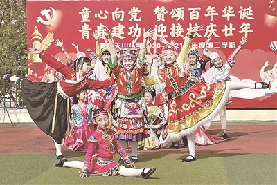 天山小学以优秀的中华文化统领学校发展,以未来的发展需求规划学校发展,以博大的视野胸襟推动学校发展,以科学的管理机制促进学校发展,实现了教师与学生和美共生同成长,用轻负高效的教育质量、享誉全国的民族教育特色和彰显智慧的教育创新打造出富有“天山特色”的优质教育品牌。