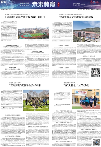 在市南教育擘画的宏图下,山东省青岛第二十六中学教育集团成立于2021年,其中青岛第二十六中学本校作为核心校设为青岛第二十六中学教育集团京山校区,把青岛第五中学设为青岛第二十六中学教育集团浮山校区,两校区实行一体化管理,并与青岛二中教育集团全面合作,探索跨区域、跨学段的人才贯通培养路径,引领基础教育高位优质发展。