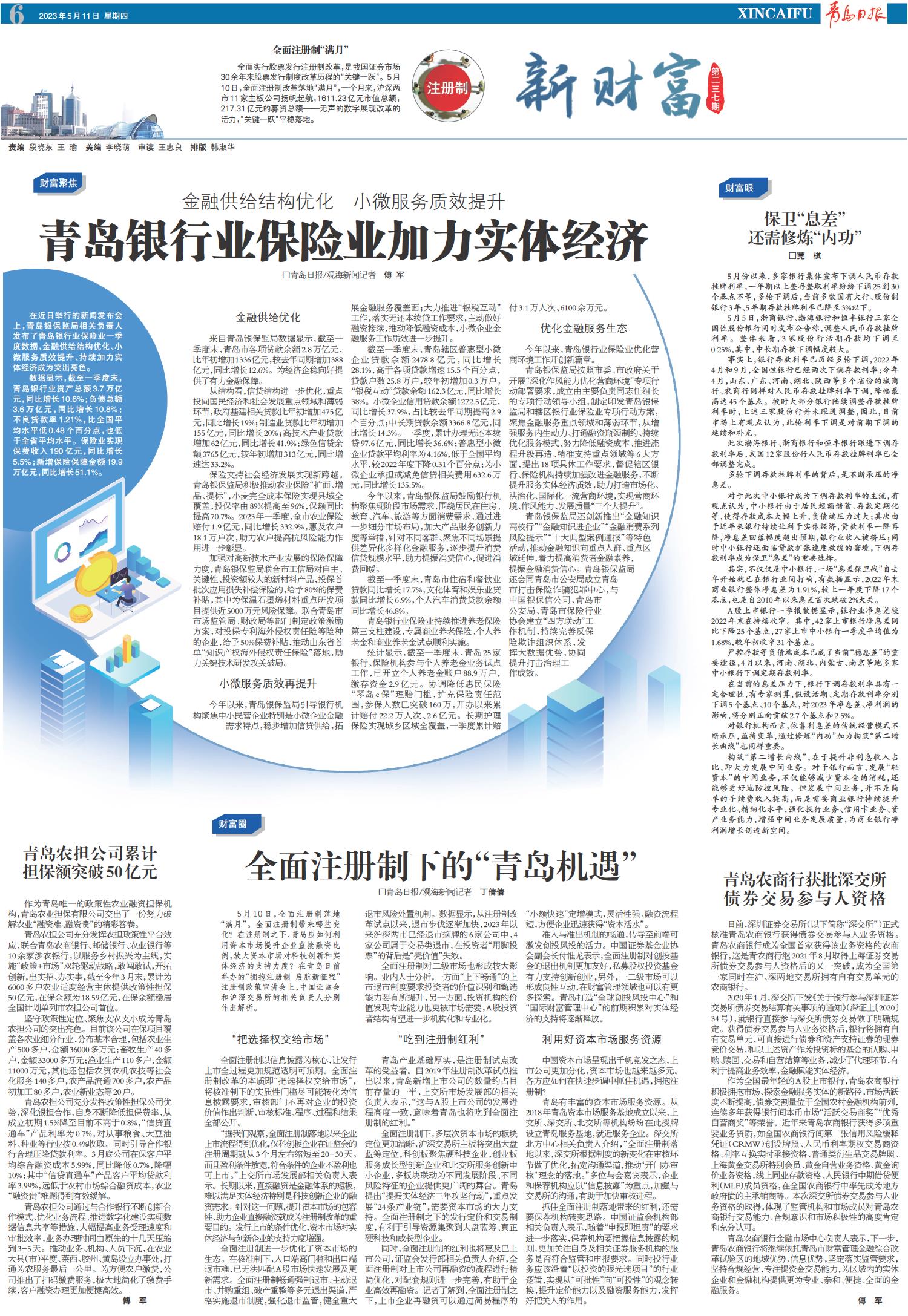 青岛银行业保险业加力实体经济
