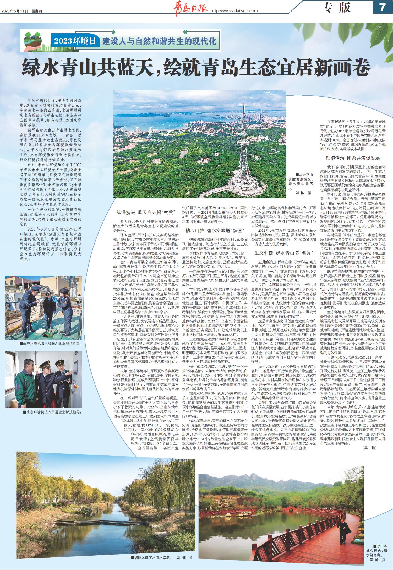 绿水青山共蓝天,绘就青岛生态宜居新画卷
