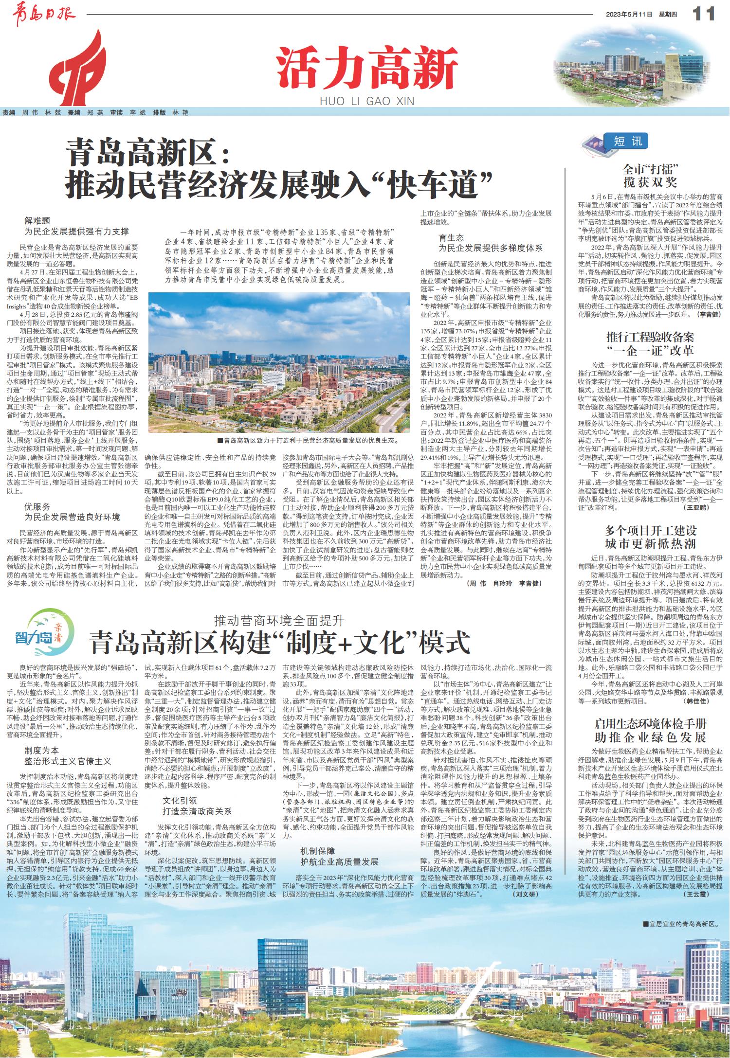 青岛高新区:推动民营经济发展驶入“快车道”