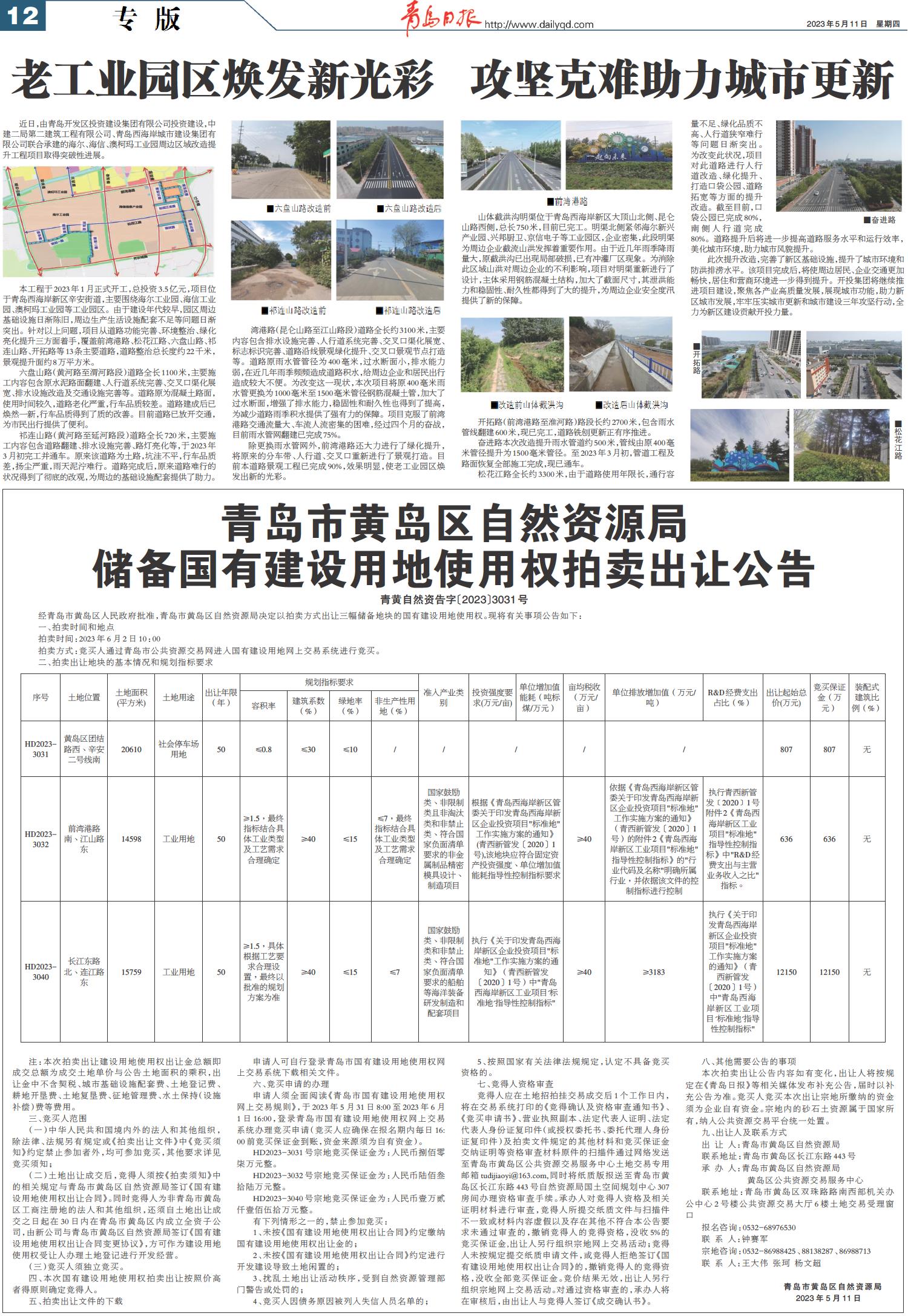 青岛市黄岛区自然资源局储备国有建设用地使用权拍卖出让公告