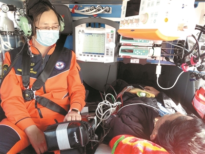 航空医疗救援对飞行护士的身心素质要求极其严苛。2018年,急救中心招募飞行护士组建航空医疗救援队伍时,林爱进已47岁,但她还是第一时间请愿加入。她积极参与各类航空医疗救护培训、演练,主动利用休息时间反复研究设备操作及装卸要领,训练地空接驳,参与适飞,克服高空不适反应,在转运前详细评估病情、了解患者需求,预估最大转运风险,精心做好准备,只为保证患者万无一失。截至目前,林爱进已化身“飞翔急救使者”成功参与转运10名危重症患者。
