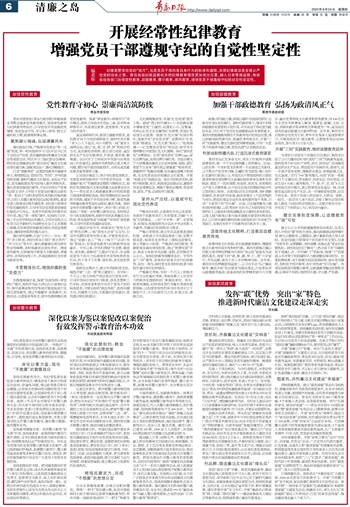纪律是管党治党的“戒尺”,也是党员干部约束自身行为的标准和遵循,加强纪律建设是全面从严治党的治本之策。青岛各级纪检监察机关把纪律教育摆在更加突出位置、融入日常管理监督,推动各级各部门加强党性教育、政德教育、警示教育、家风教育,增强党员干部遵规守纪的自觉性坚定性。