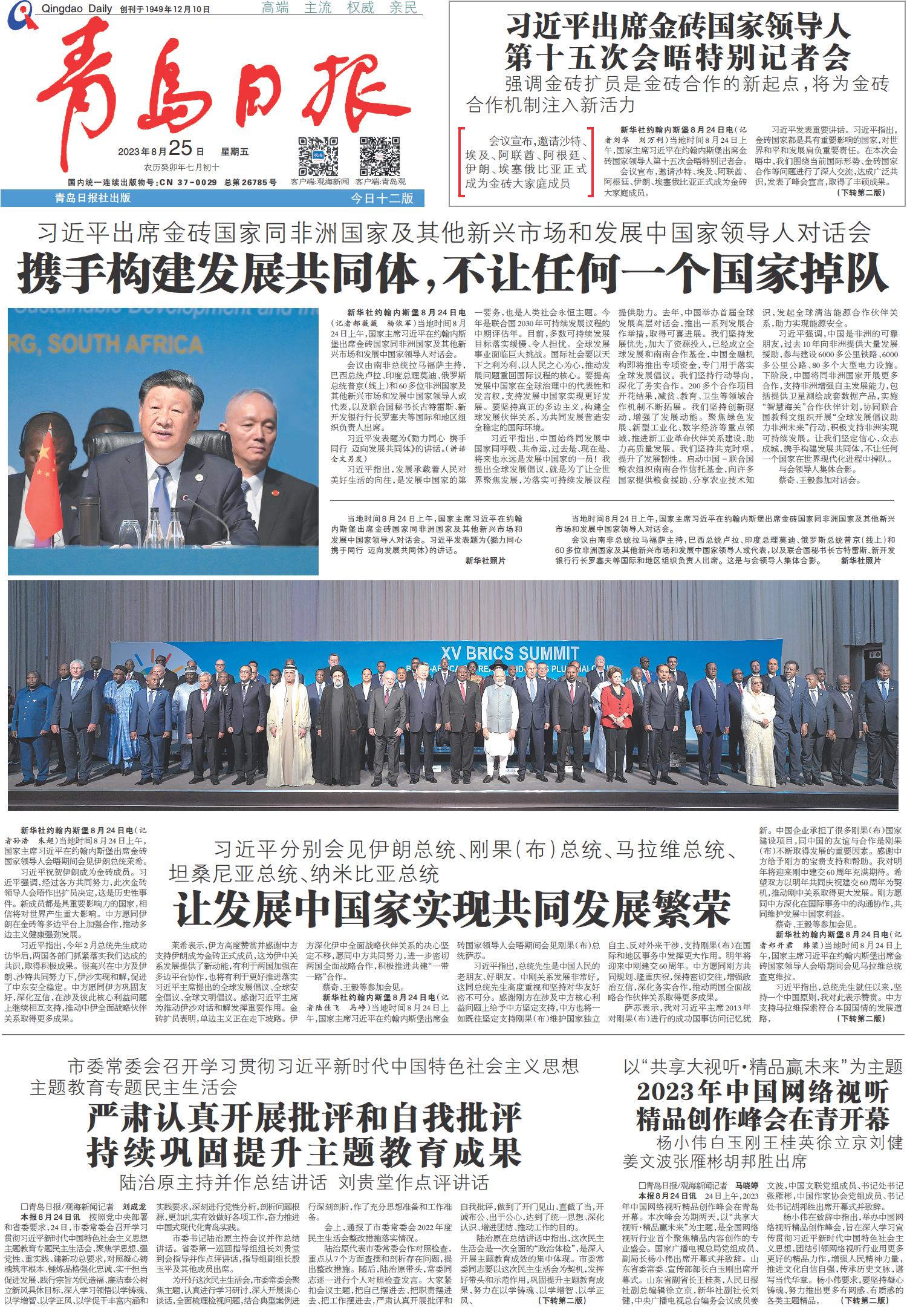 习近平出席金砖国家领导人第十五次会晤特别记者会