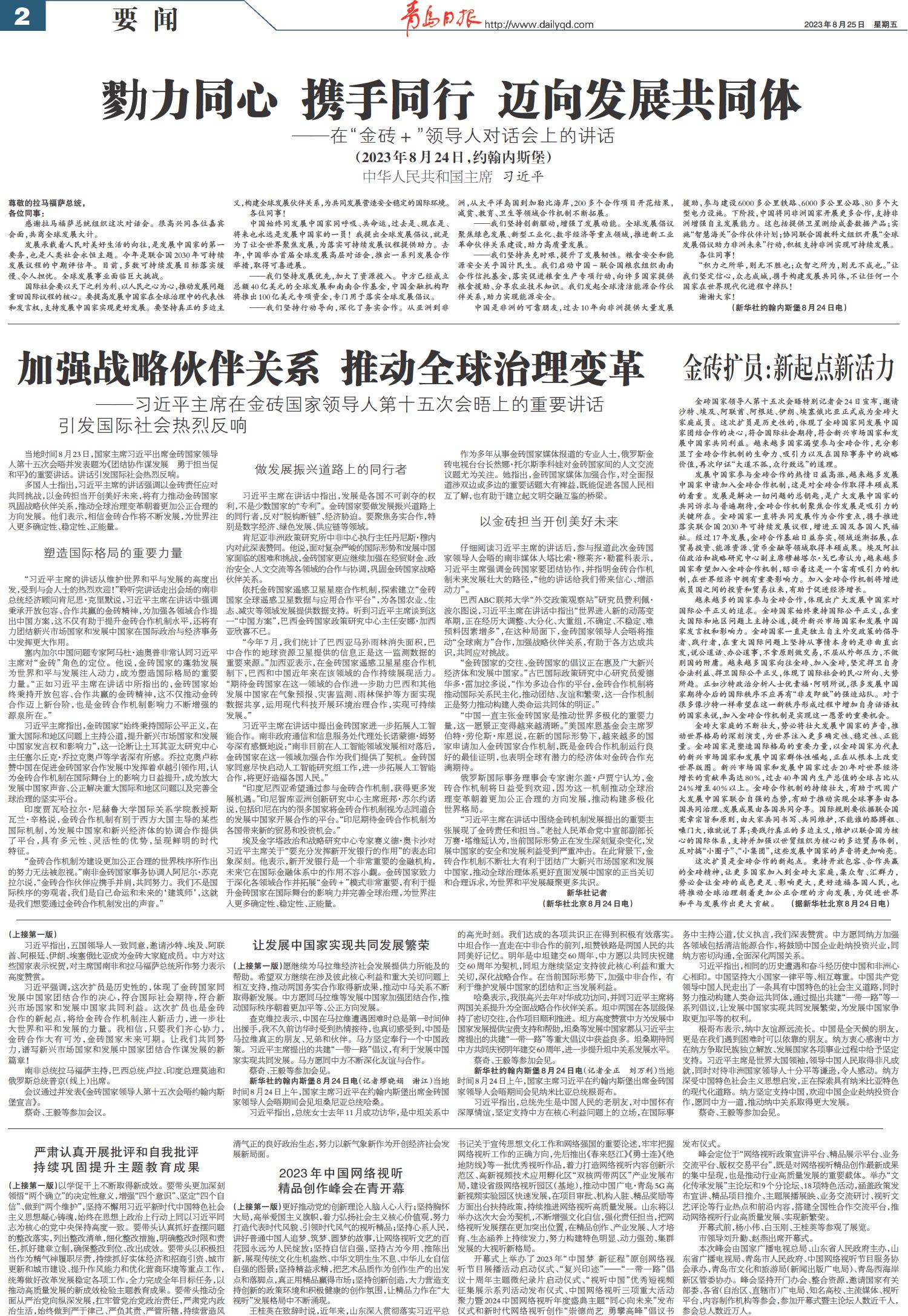 加强战略伙伴关系 推动全球治理变革
