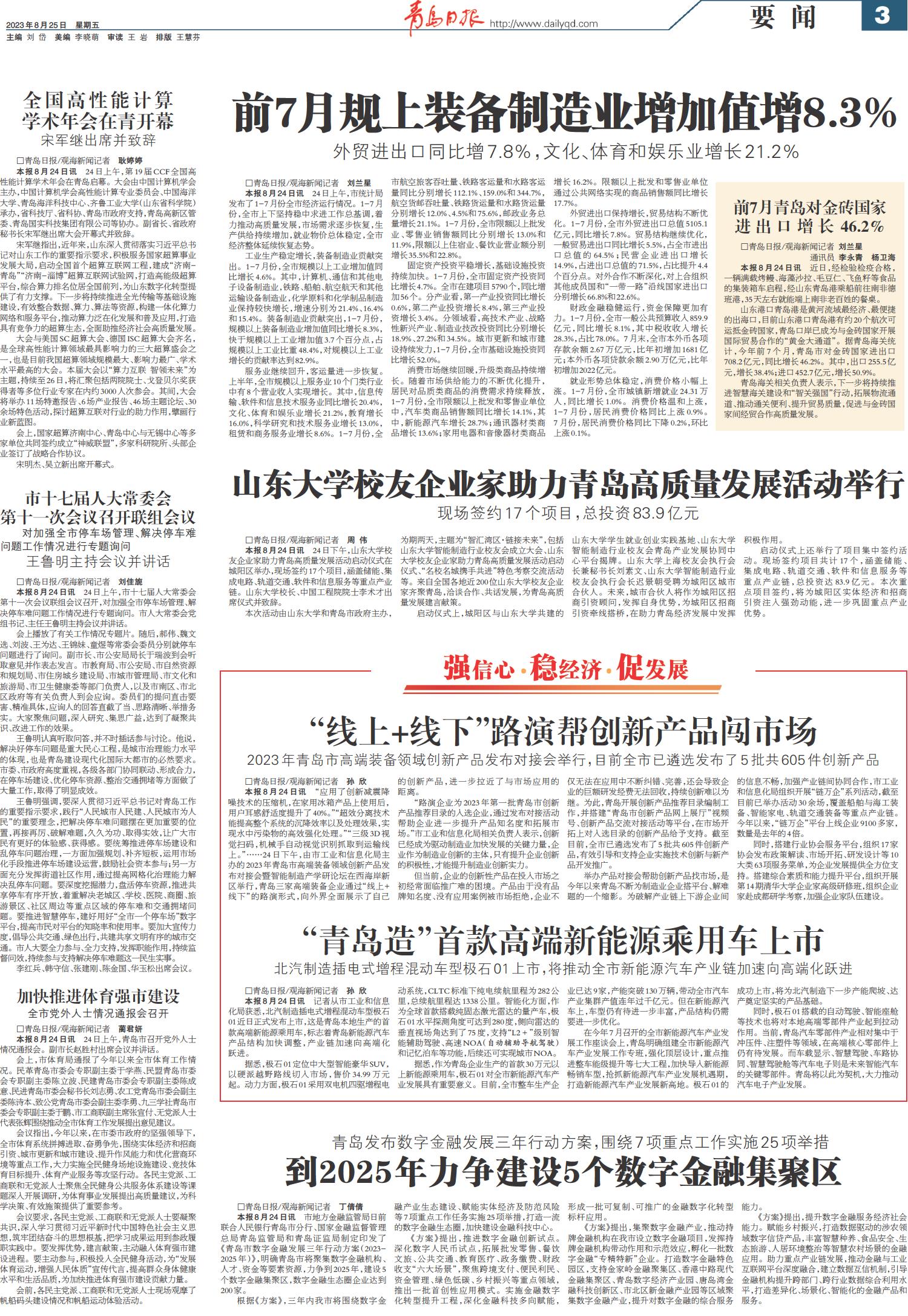 山东大学校友企业家助力青岛高质量发展活动举行
